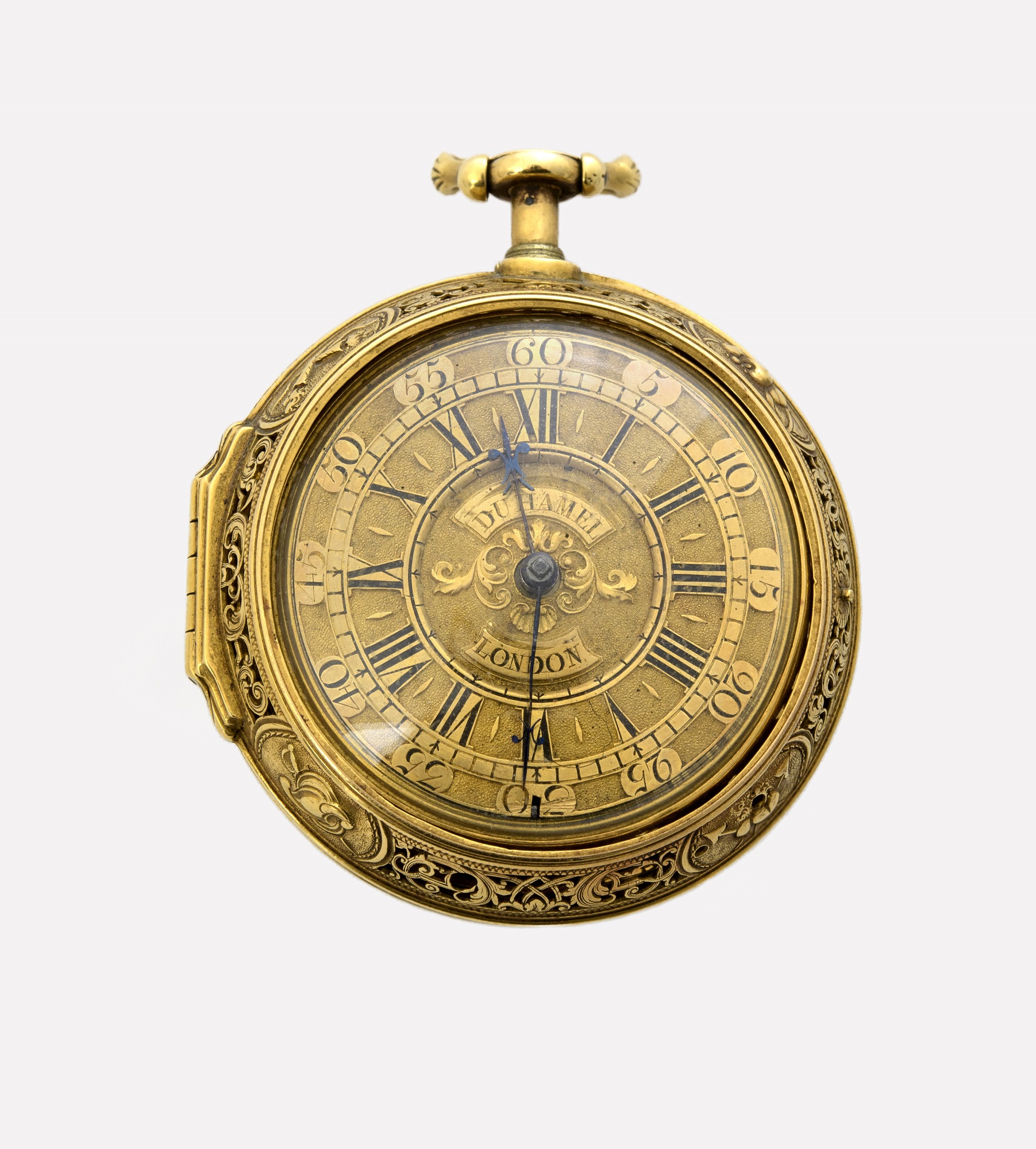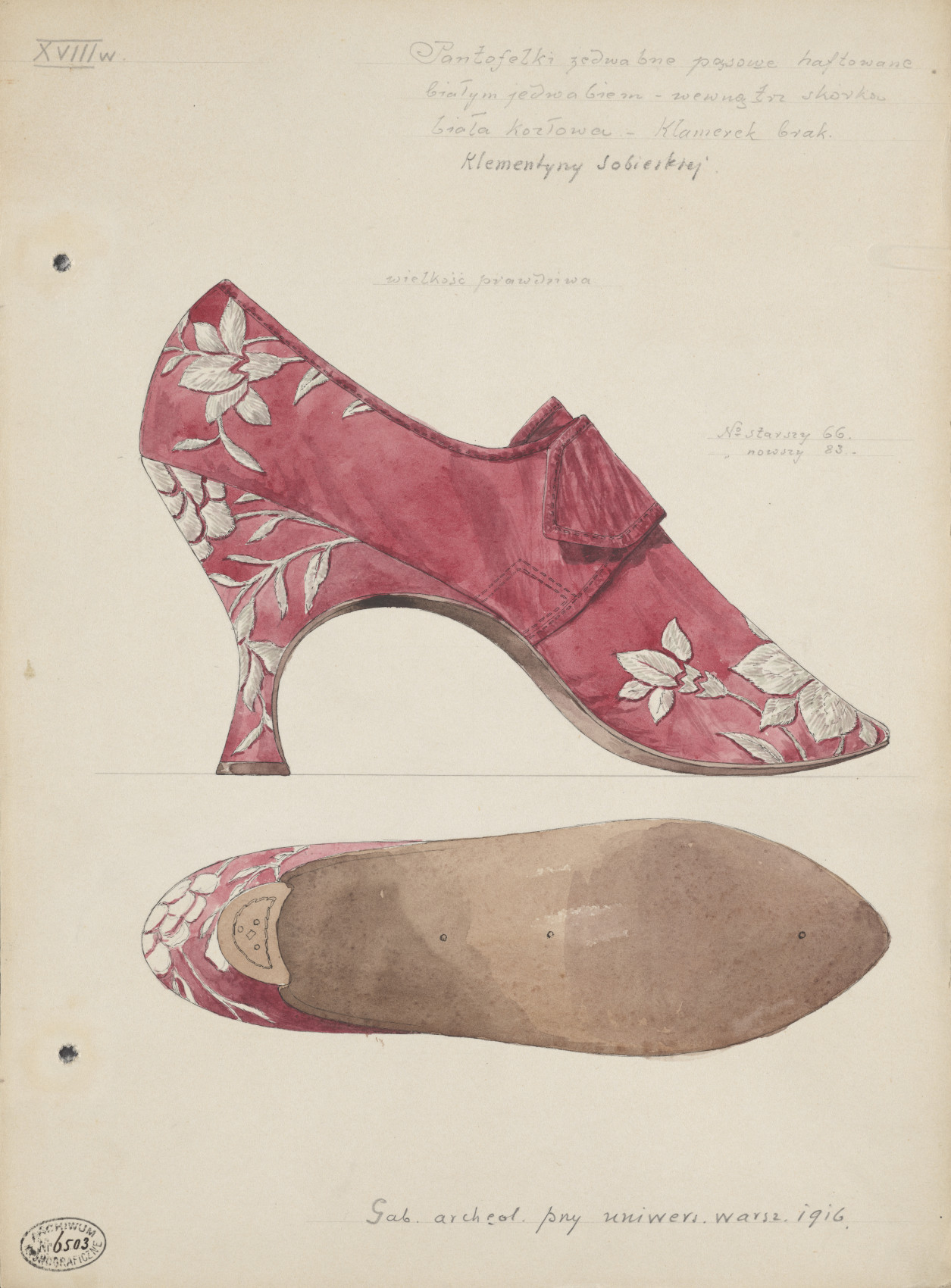Clementina is dressed in a silvery, embroidered corset and a light pink dress and covered with a blue coat lined with ermine fur, associated with members of royal families. She also has a closed crown. Her face is slim, her features regular, and her expression joyful and full of faith in a bright future. Her right hand rests on a watch, which was given to her as a wedding gift by Frances, the wife of the Duke of Mar. Thanks to fortuitous circumstances, this valuable piece of craftsmanship and memento associated with Clementina has survived and is presented in this exhibition.