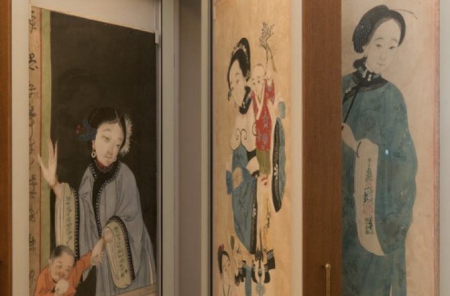 W specjalnych gablotach, składających się z kilku ruchomych części, przechowywane są prace na papierze przedstawiające chińskie damy. Prace te zostały wykonane na Dalekim Wschodzie w warsztatach utalentowanych rzemieślników, którzy przygotowali je na zamówienie z Europy. Skąd wiadomo, że zamówienie było z Europy a nie z Chin? Można to poznać po tym, że na pracach widać nadgarstki lub stopy dam, a tych części ciała w Chinach nie pokazywano, ponieważ uważano to za niewłaściwe.